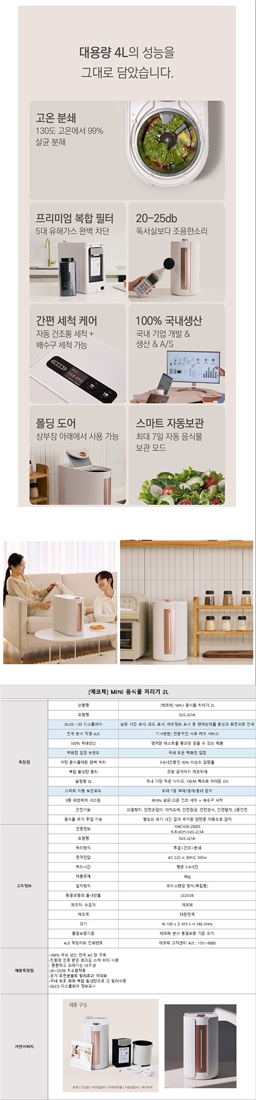 [에코웨일 건조분쇄형 강력건조통 음식물처리기 2L (노블화이트)]